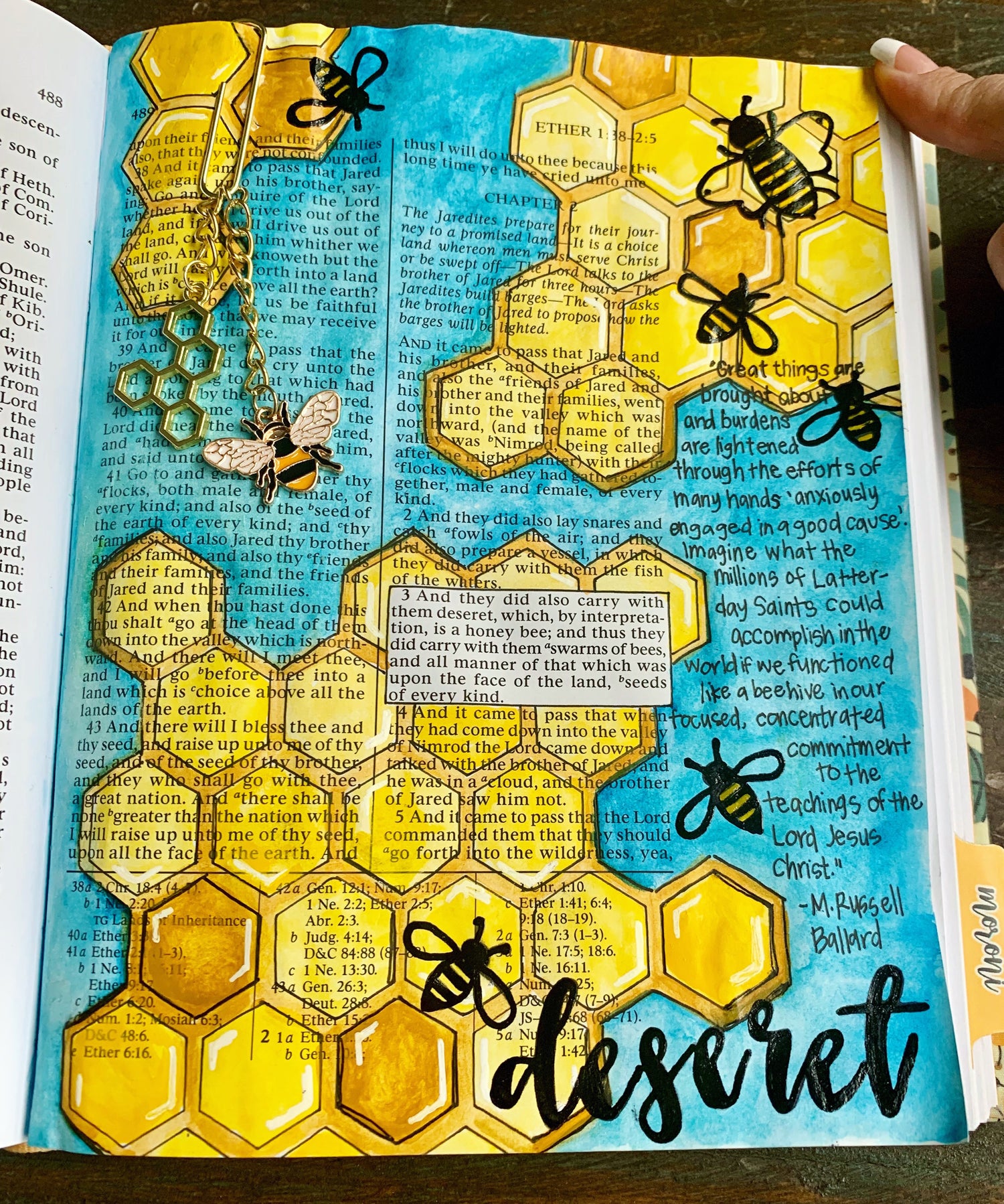 This kit includes supplies needed to create a beautiful honeycomb layout in your scriptures or journals. Example layout shown is Ether 2:3- "And they did also carry with them deseret, which, by interpretation, is a honey bee; and thus they did carry with them swarms of bees, and all manner of that which was upon the face of the land, seeds of every kind." A great conference talk I use to study this verse is "Be Anxiously Engaged" by Elder M. Russell Ballard. This layout will also work in the D&C 58:27, or the New Testament Titus 2:14.