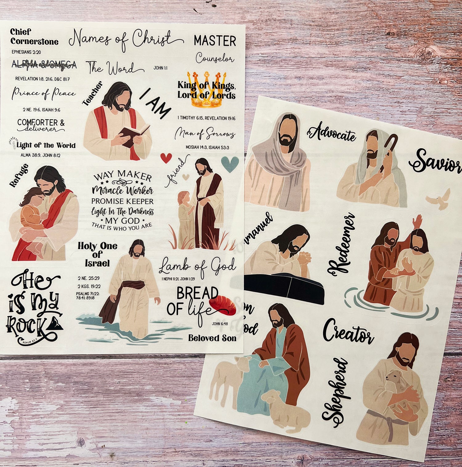 We have created a monthly sticker subscription that is the easiest way to add beautiful graphics to your scriptures and/or scripture journals. No art skills required! Each month you will receive 2 sticker sheets with stickers. These will be printed on a laser printer, on clear or white sticker paper, and with peel-able stickers sized approximately 6.75" X 9.25" in size. Sticker pages may be for one theme, or two separate themes.