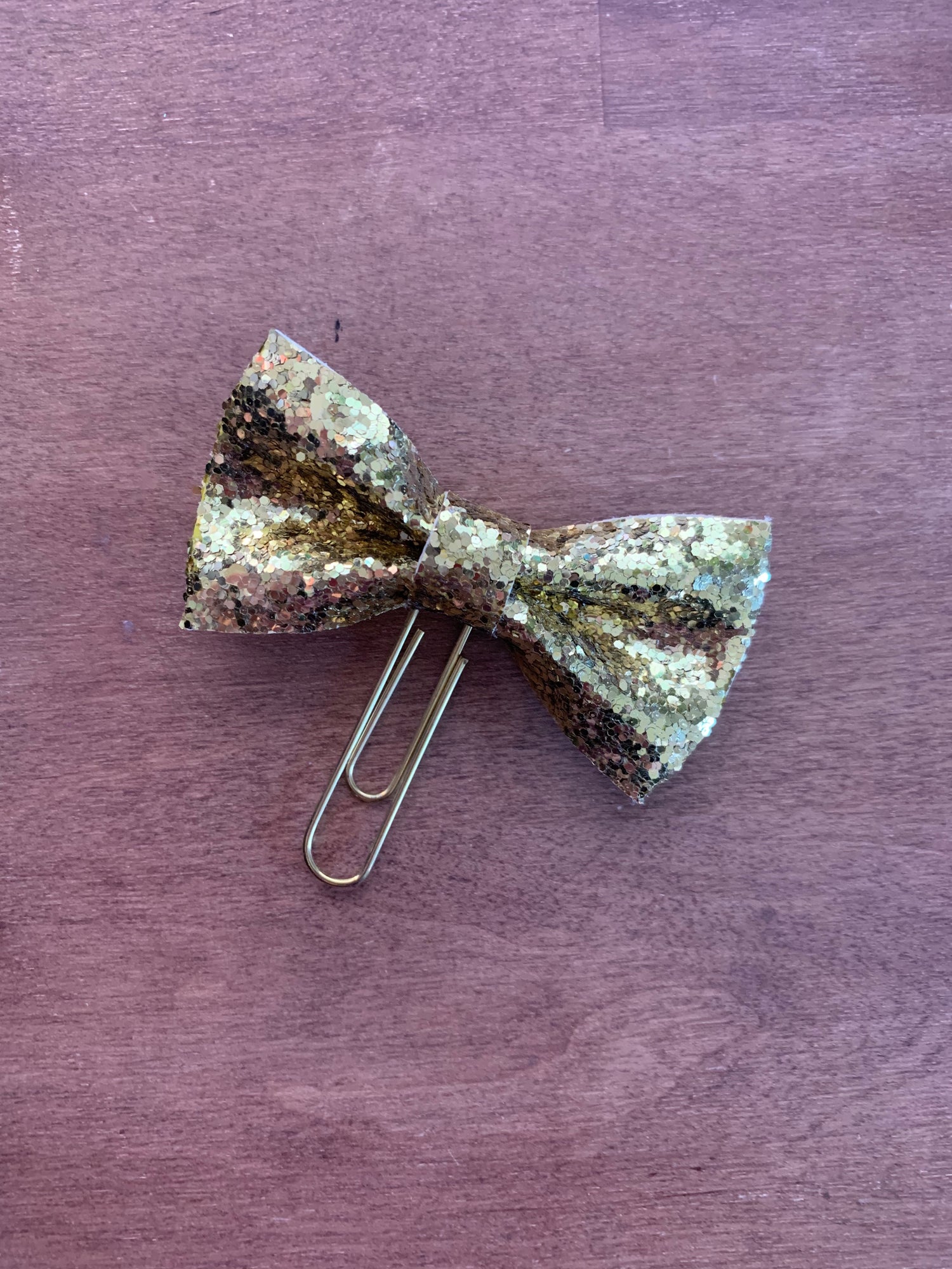 • Gold bow paperclip bookmark (leather or glittered depending on what's in stock)