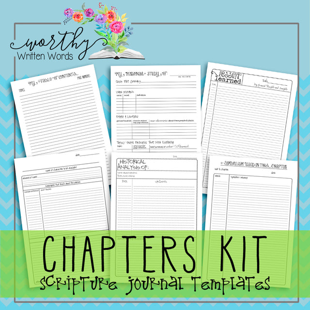 Everything you need to start a Chapters Scripture Journal in one discounted price so you don't have to purchase the templates individually. Can be used for any chapter over and over again. This is a digital file that you download and print at home, not a physically shipped product. If you are looking for a physical journal with the templates printed inside, see here. This kit includes the following templates in .pdf files: