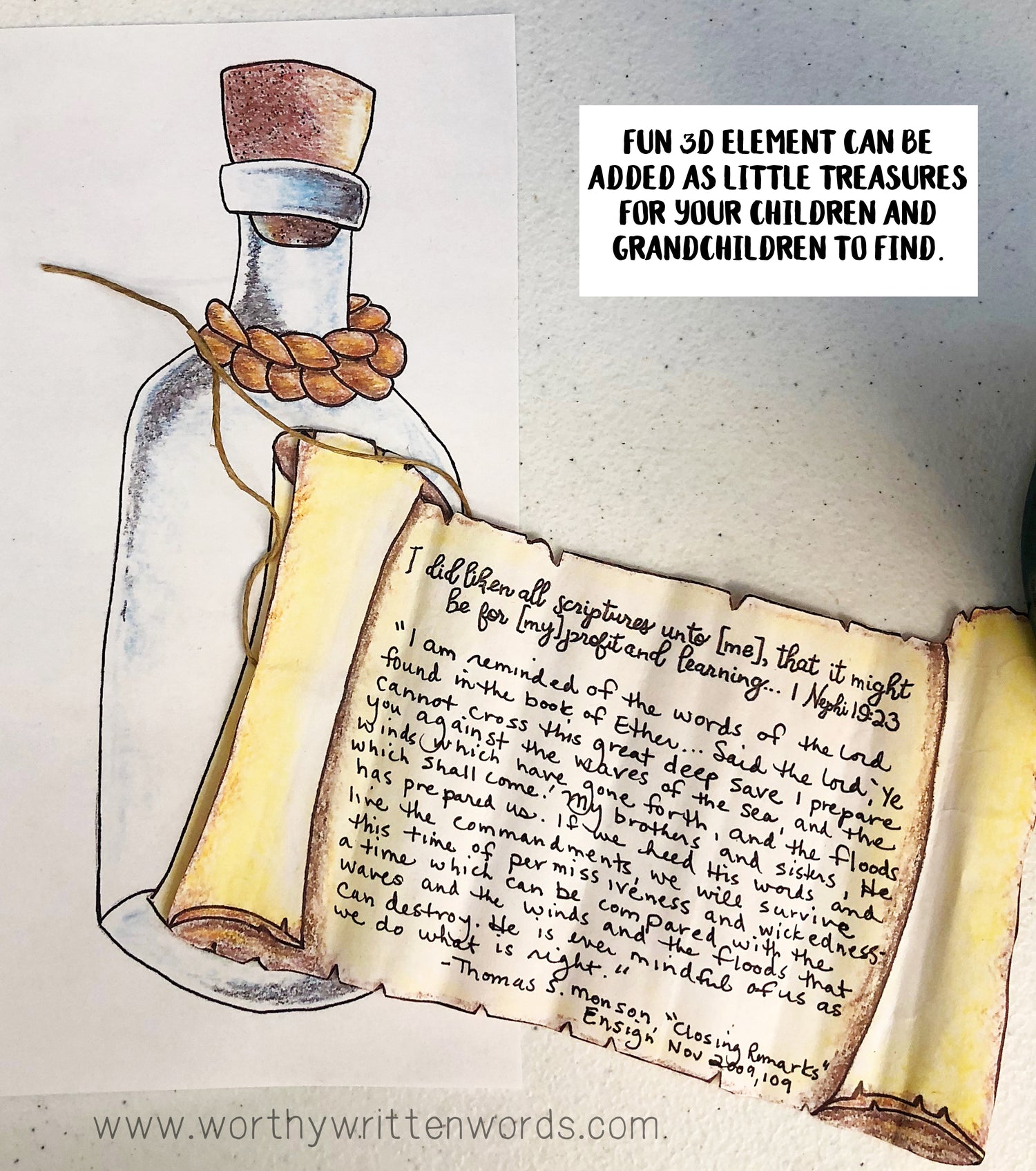 "This kit is designed for those who don't know how or are afraid to start scripture journaling, those that don't feel artistic or creative enough, and those who say "will you just do it for me?". (Or if you like the design and want to add it to your own scriptures.) The important part of scripture journaling is making sure we document the impressions we are given as we read and research, and the thoughts and feelings we want to share with our children and posterity. This Quick Page will help you do just that by just adding your own journaling to it." -Tamara Zappe