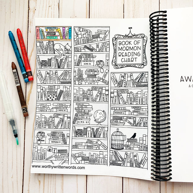 Color in the books as you track your study progress. This is available as a free digital download, or you can purchase it as an 8.5 X 11 sticker. It goes great inside our Book of Mormon Scripture Journal.