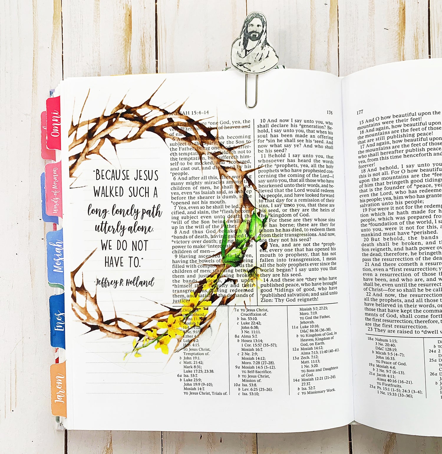 Print on clear sticker paper to use in your scriptures! This is available as a digital file that you download and print at home, or as a physically shipped product. Already printed includes three laser printed pages on 8.5X11 clear sticker paper, not precut. Because the white lilies do not show up on clear sticker paper, a small white sticker with the two lilies will also be sent in physical products, and ARE precut.