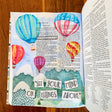 Colossians 3:2- Set your mind on things above! Instead of looking around at your peers, social media or man made solutions to help with your problems, look up! This kit comes with two full page sticker sheets, a double sided devotional, and 10 3d foam squares and supplies to create a paperclip bookmark.