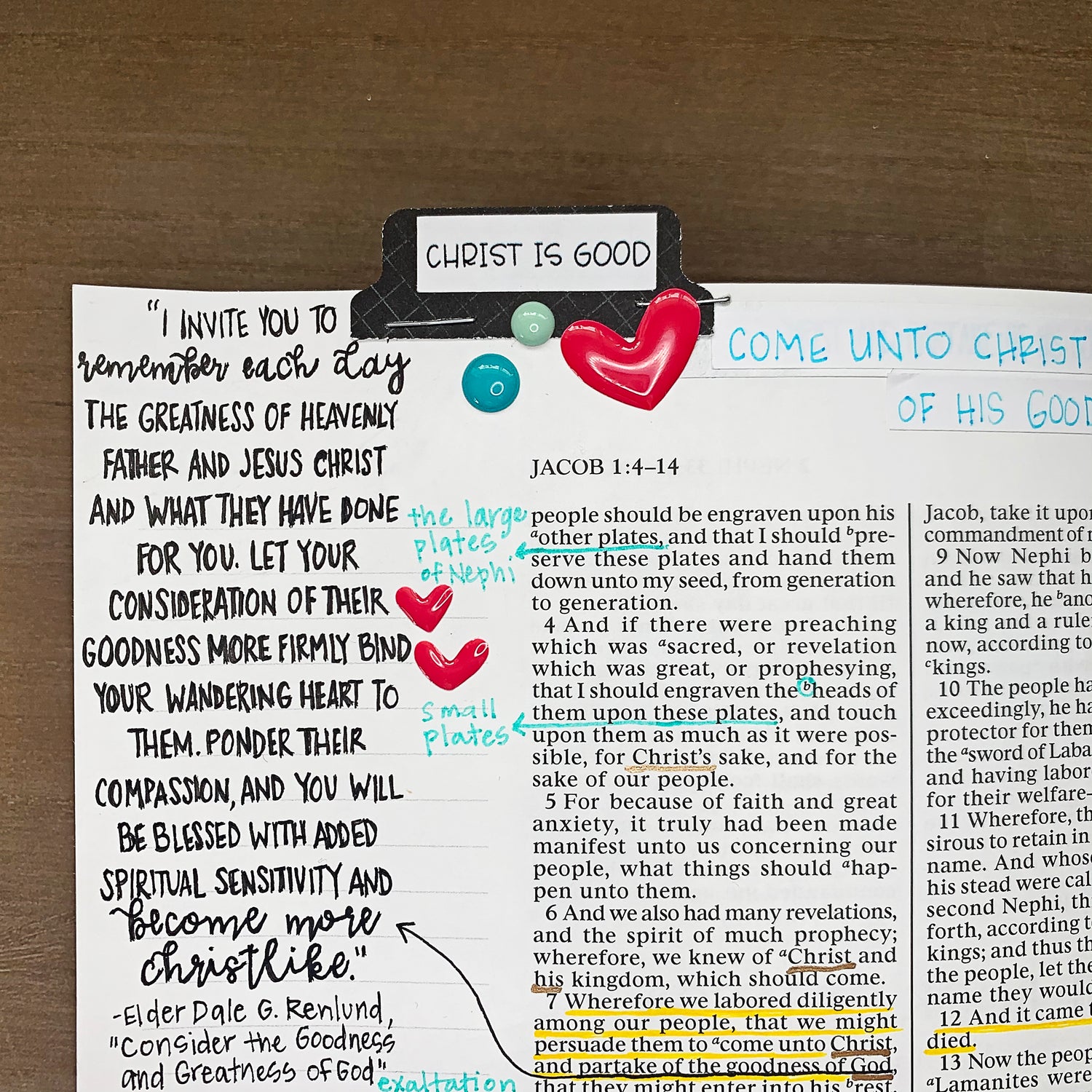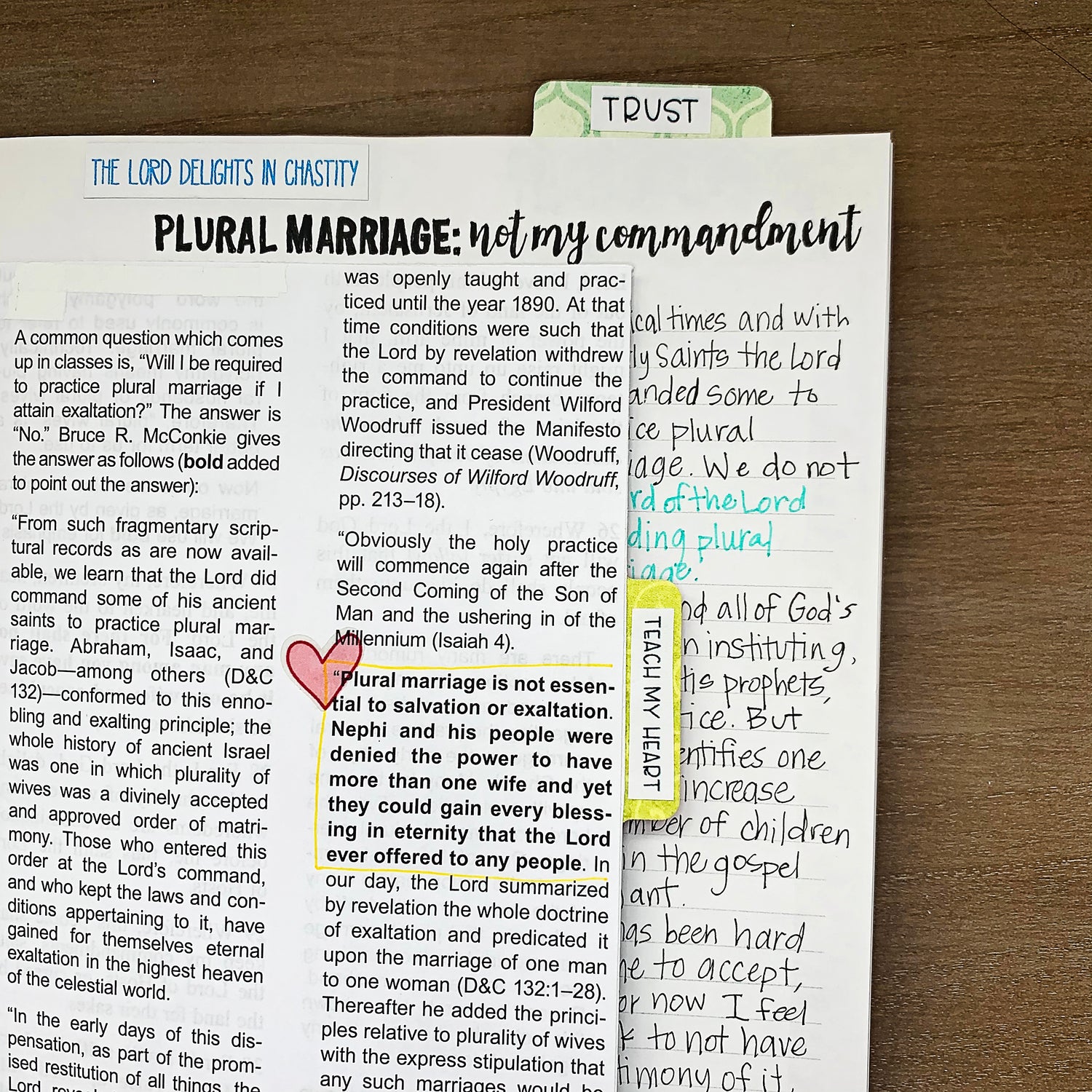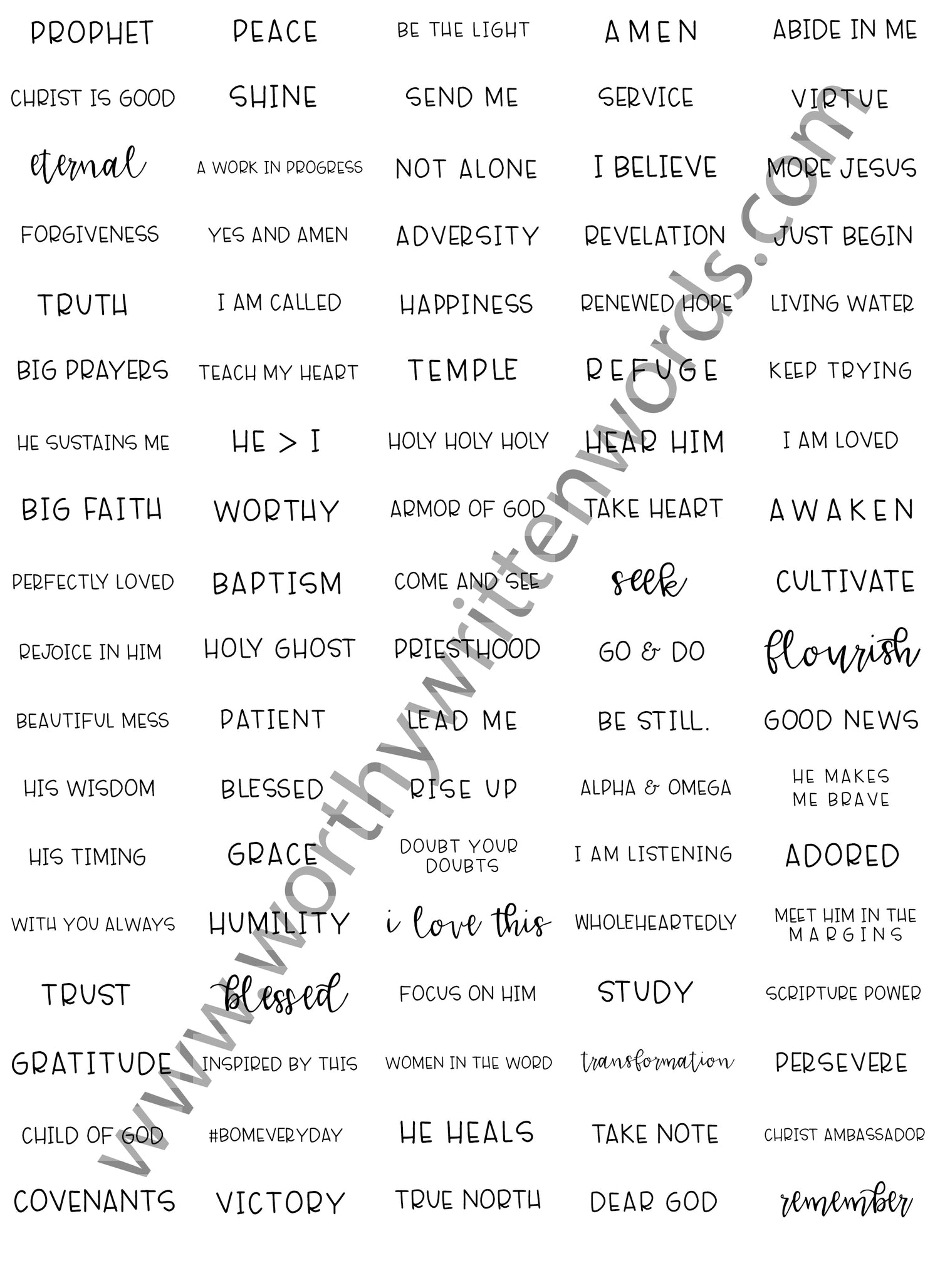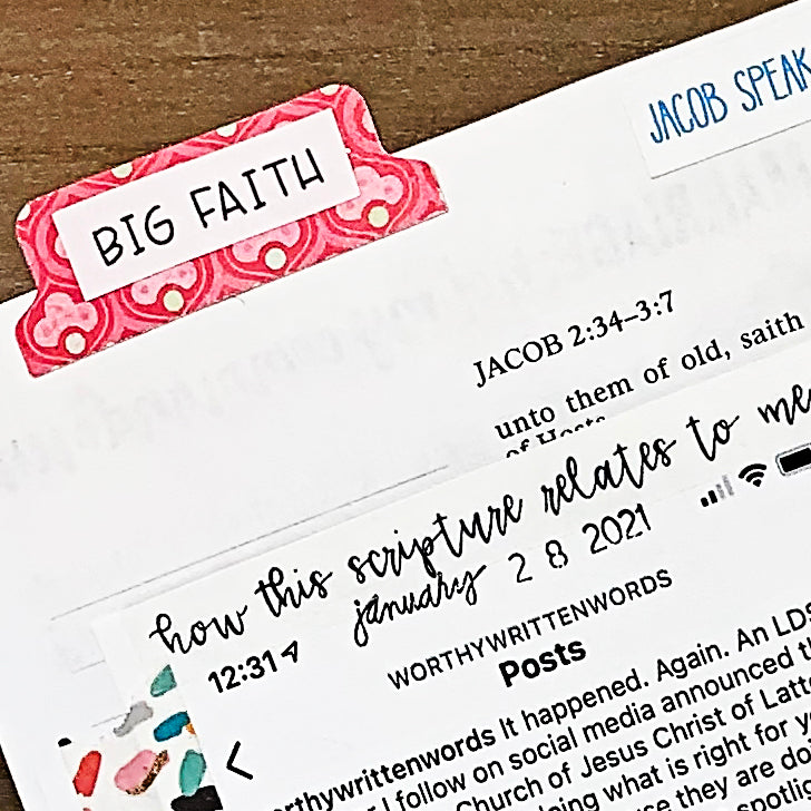 Create your own tabs in minutes. Just add a predesigned sticker label to a tab and its ready to attach to your scripture page, tip in, or journal. This kit comes with 25 tabs, many which are double sided, as well as 90 printed and cut labels. Some tabs are scrapbook paper thick, and others are super thick card stock. Glitter, corrugated, velvet raised textured, and fun patterns! Design of tabs vary depending on what is in stock.